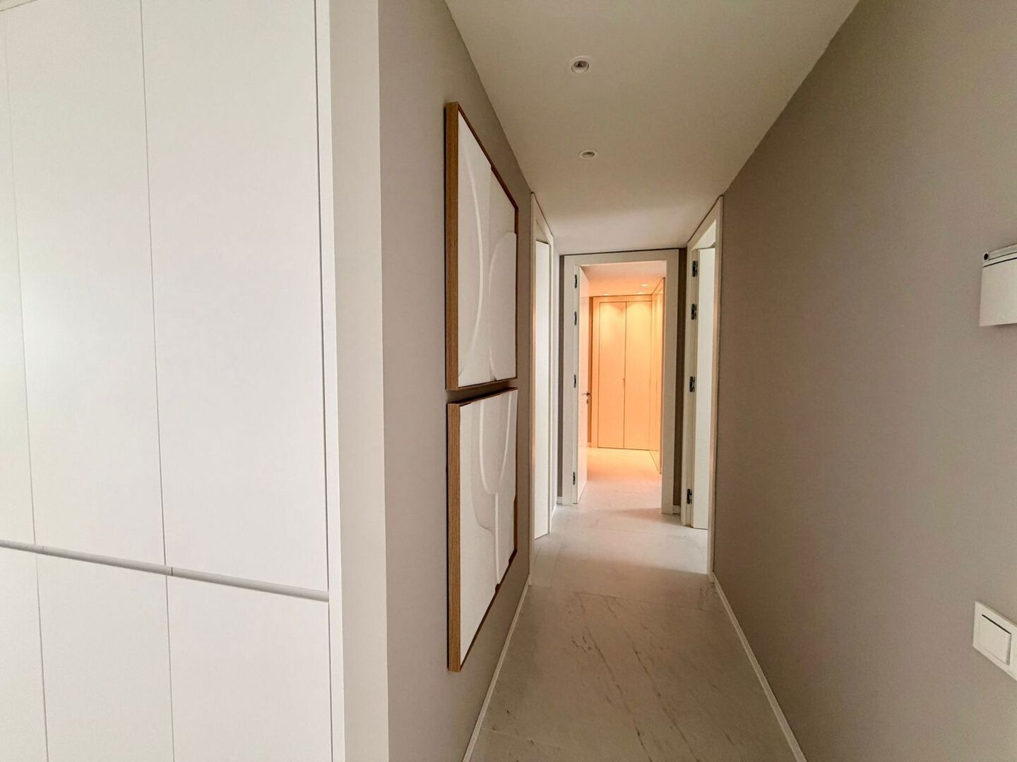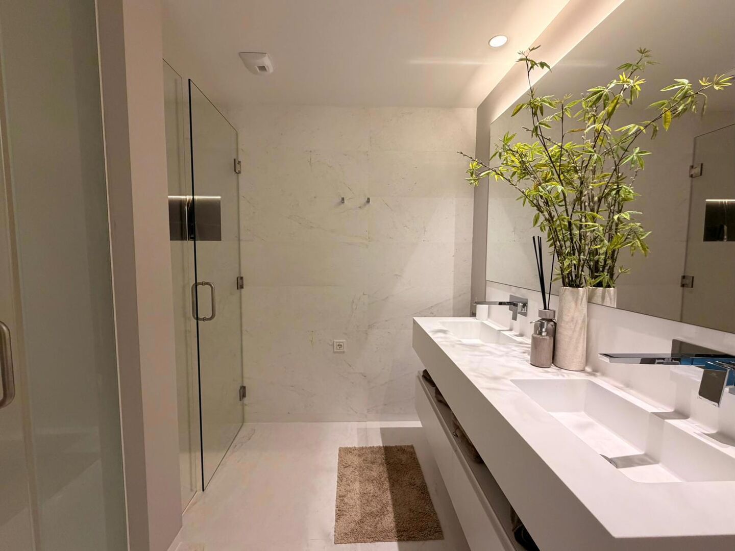 De hoofdslaapkamer is voorzien van inbouwkasten en een en-suite badkamer, terwijl de tweede slaapkamer ideaal is voor gasten of familie. Het interieur combineert hoogwaardige Porcelanosa-afwerkingen met meubilair en design van Minotti, waardoor een verfijnde, elegante en tijdloze leefruimte is gecreëerd.